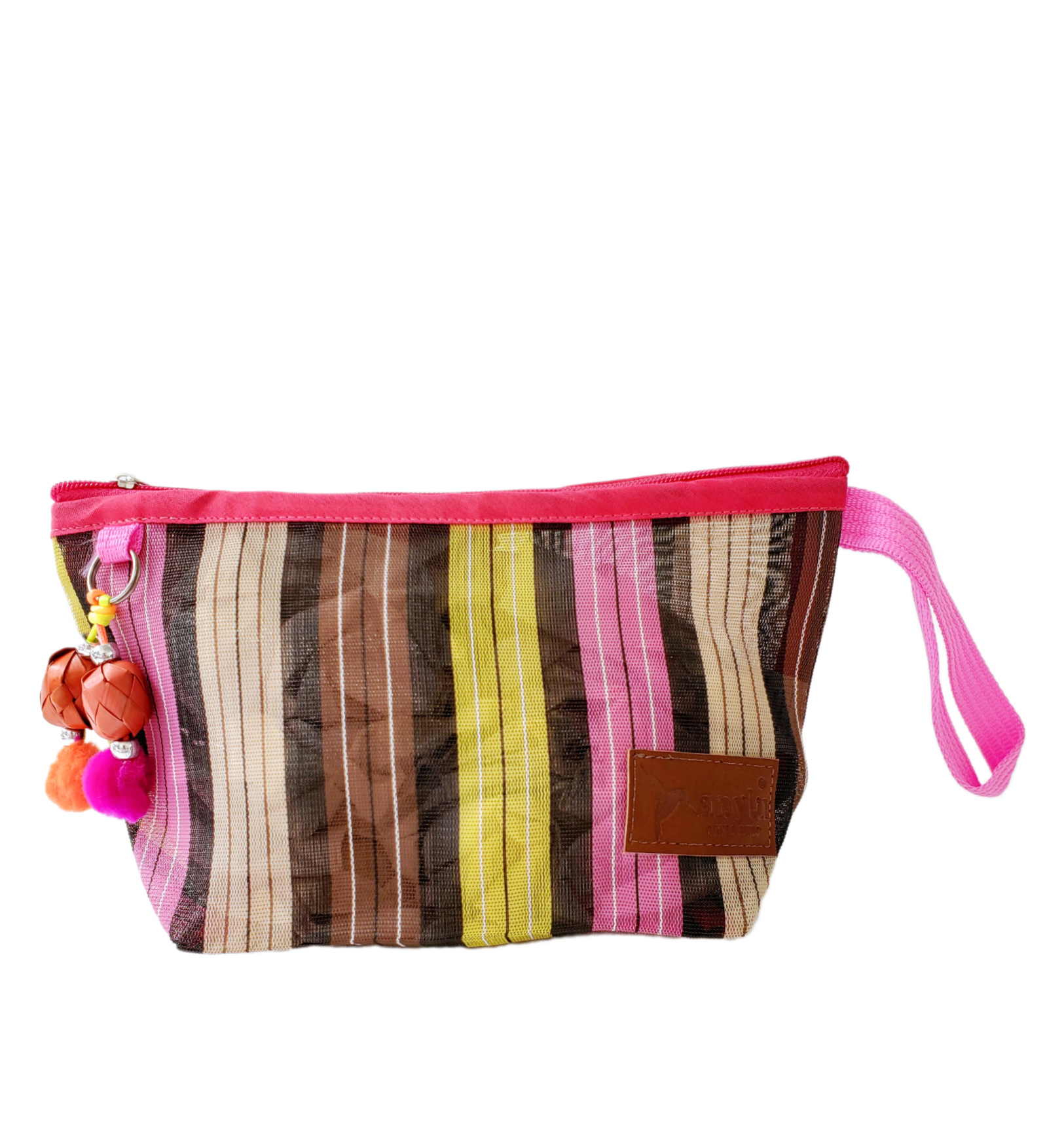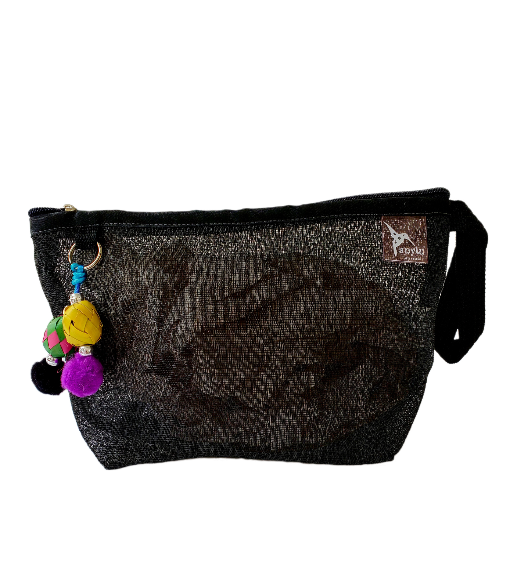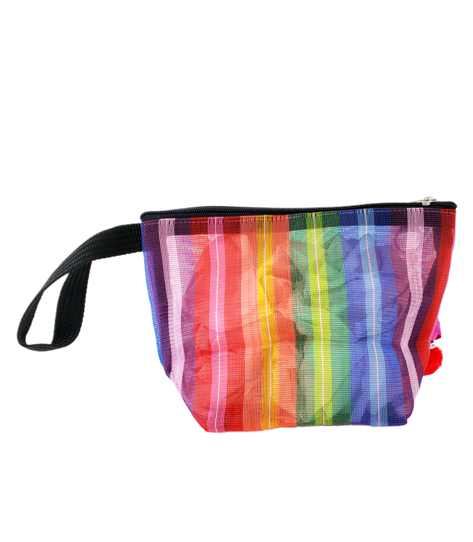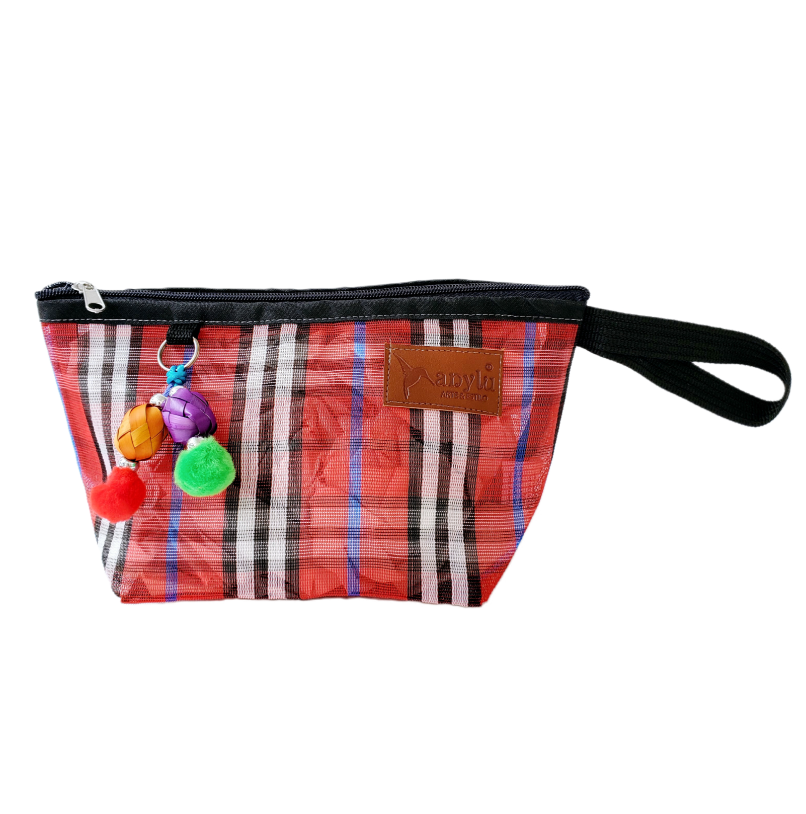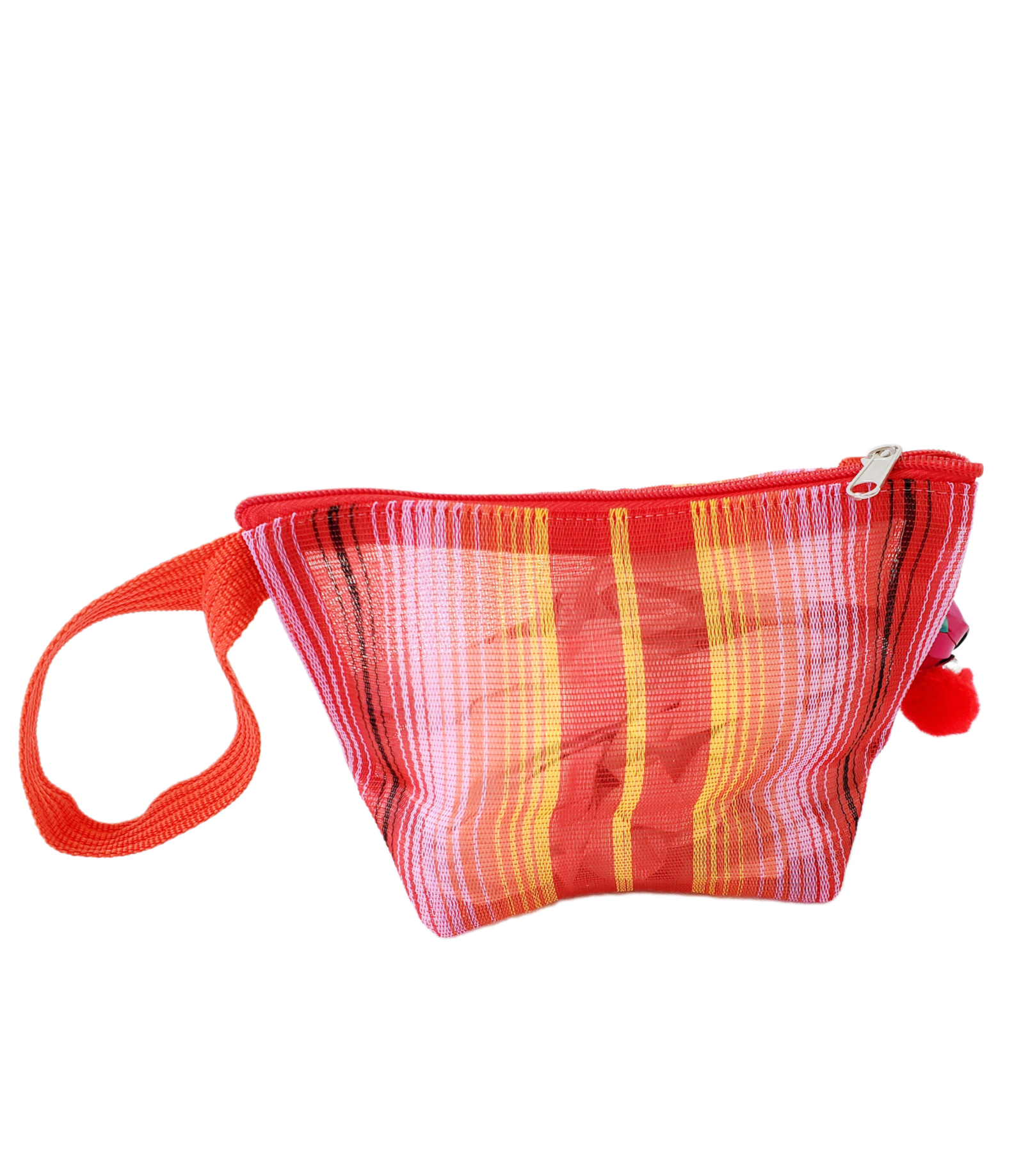 Inspirada en la colorida bolsa de ixtle usada por los aztecas, hemos diseñado cada uno de nuestros productos como una manifestación de nuestra mexicanidad. Elaborada artesanalmente con malla, porta nuestro distintivo llavero hecho con materiales típicos como el peltre de Tonalá, Jalisco y esferas de palma michoacanas.