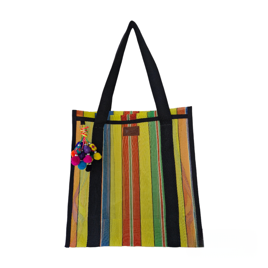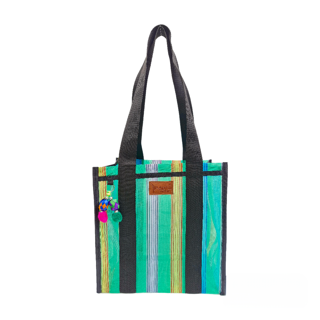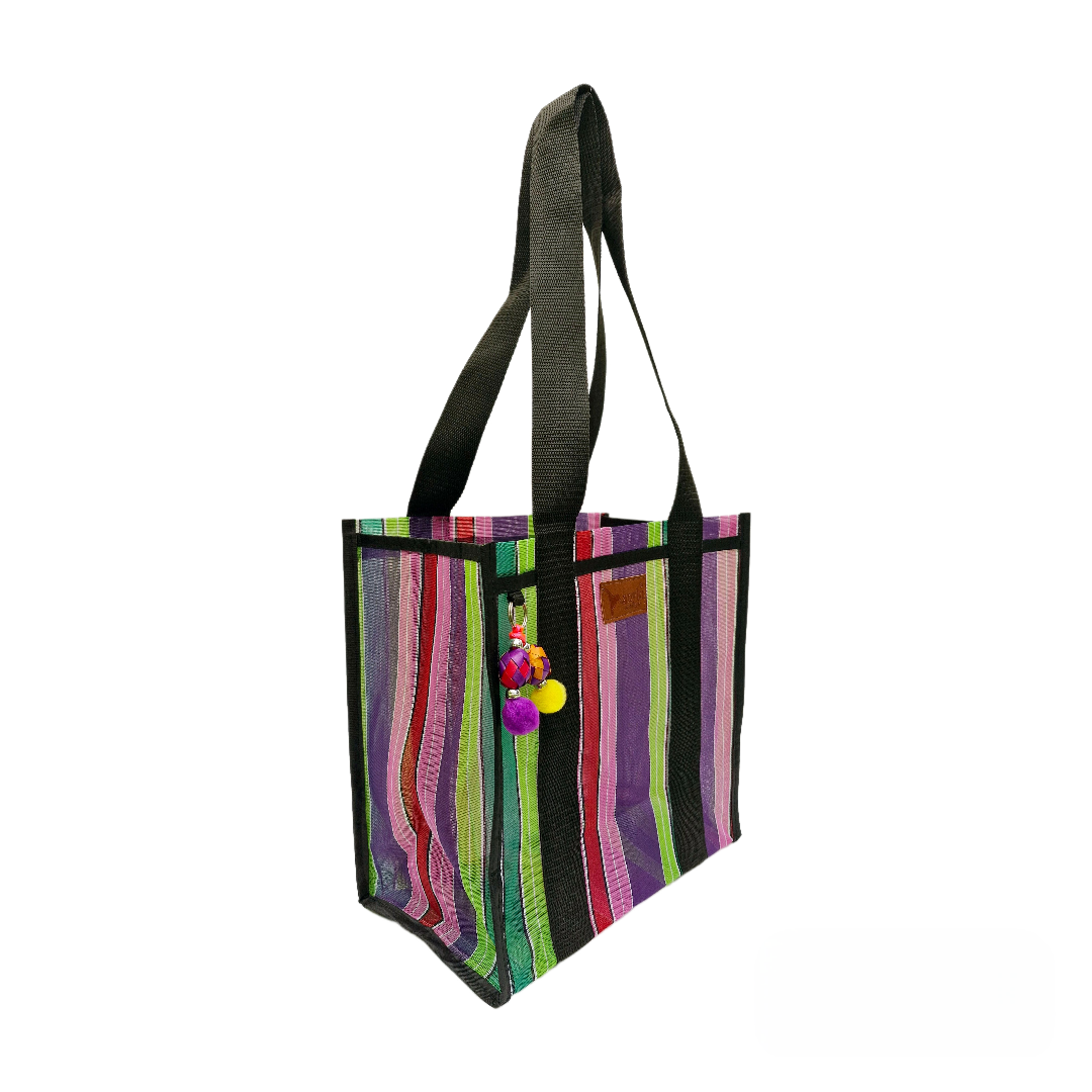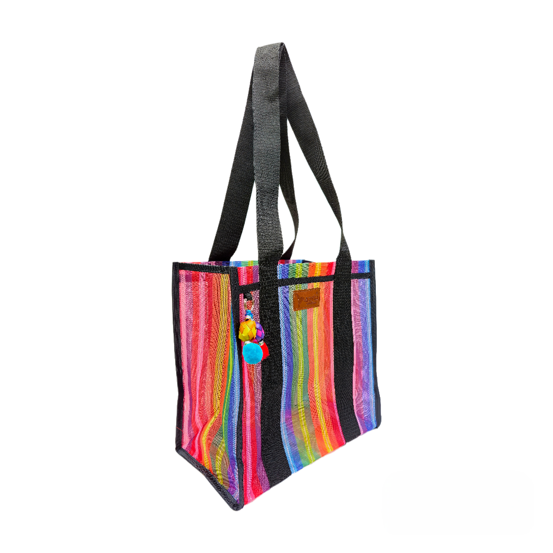 Inspired by the colorful ixtle bag used by the Aztecs, we have designed each of our products as a manifestation of our Mexicanness. Handcrafted with mesh, it carries our distinctive keychain made with typical materials such as pewter from Tonalá, Jalisco and Michoacan palm spheres.