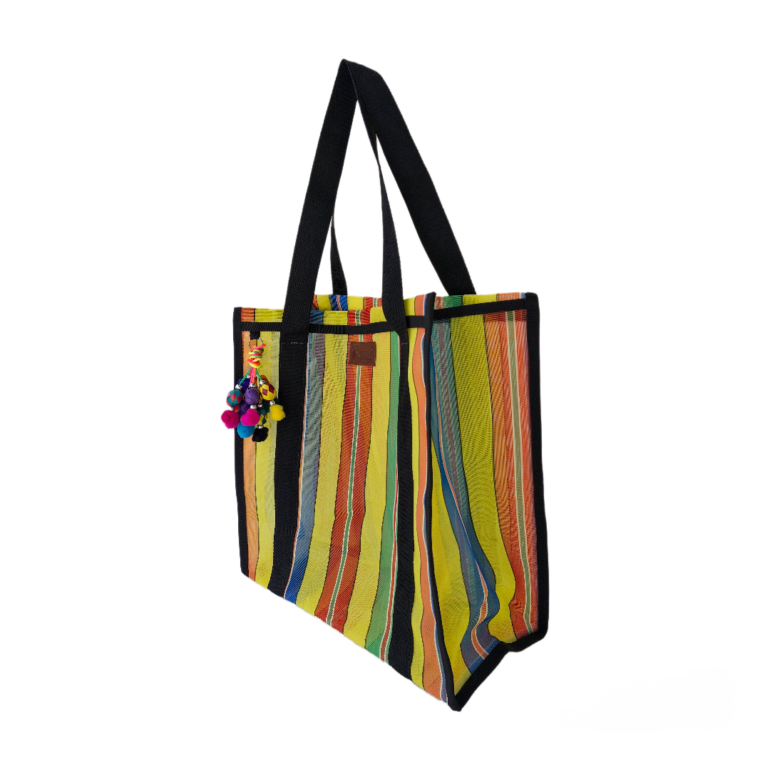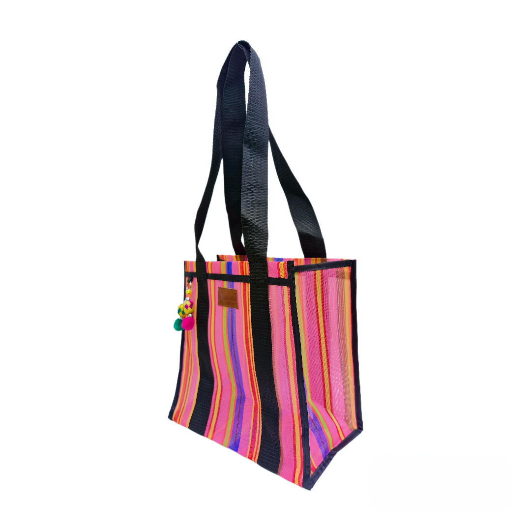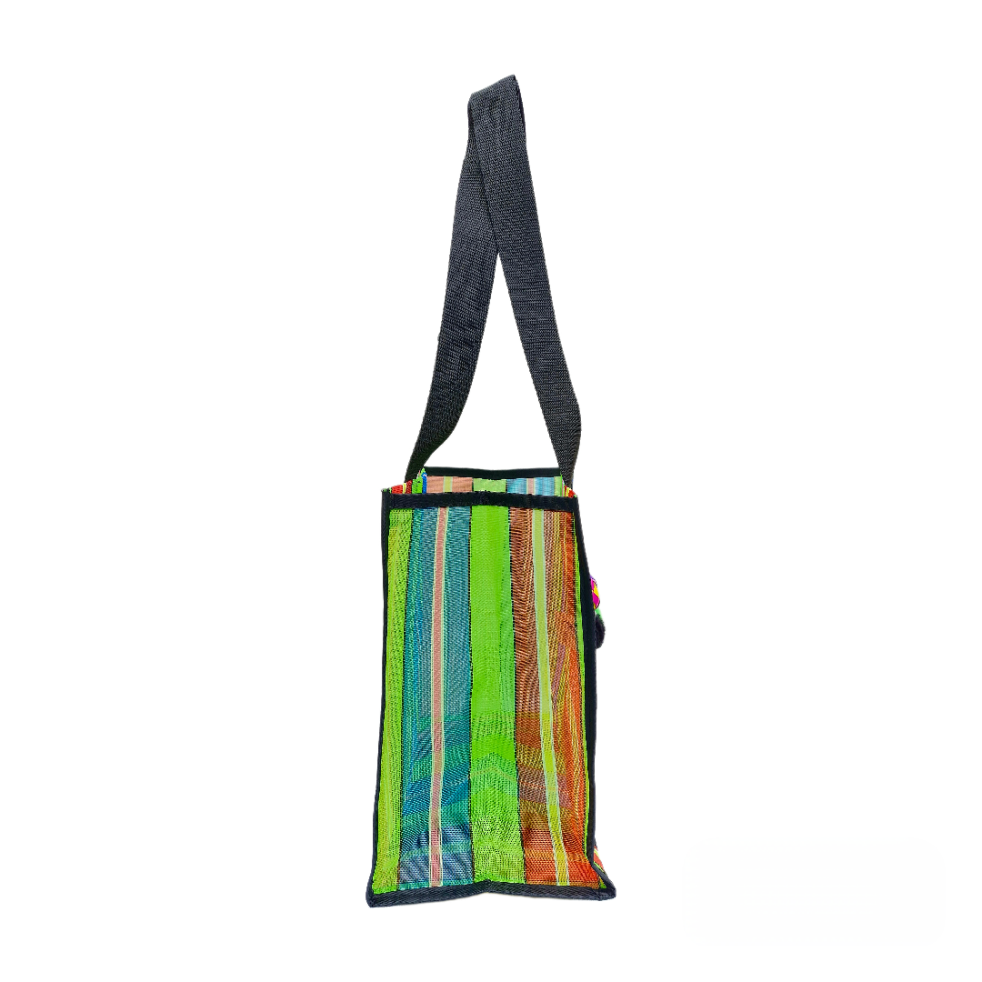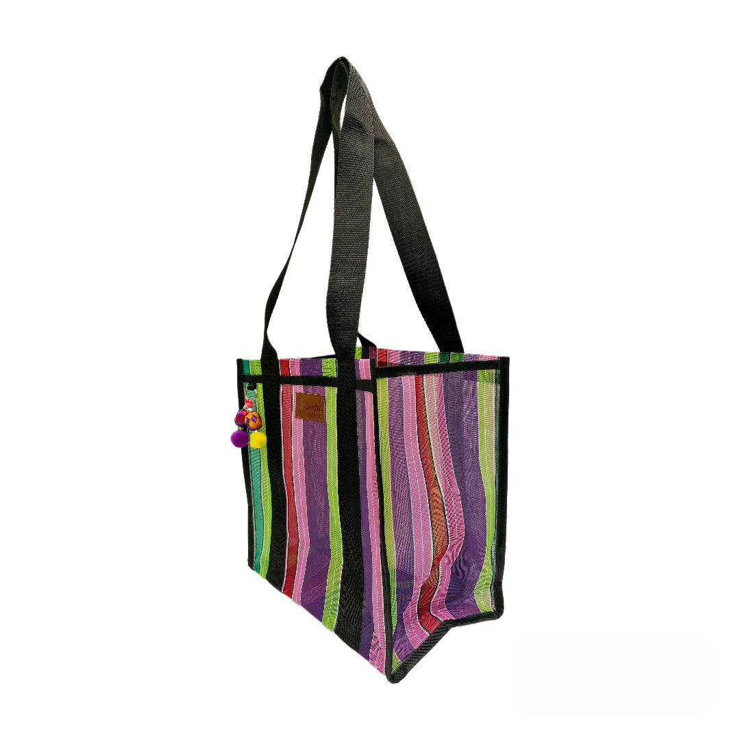 Inspired by the colorful ixtle bag used by the Aztecs, we have designed each of our products as a manifestation of our Mexicanness. Handcrafted with mesh, it carries our distinctive keychain made with typical materials such as pewter from Tonalá, Jalisco and Michoacan palm spheres.