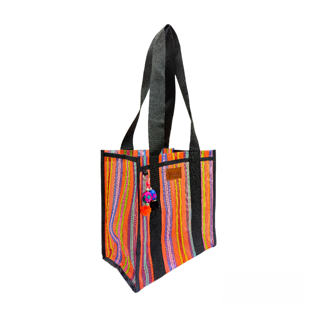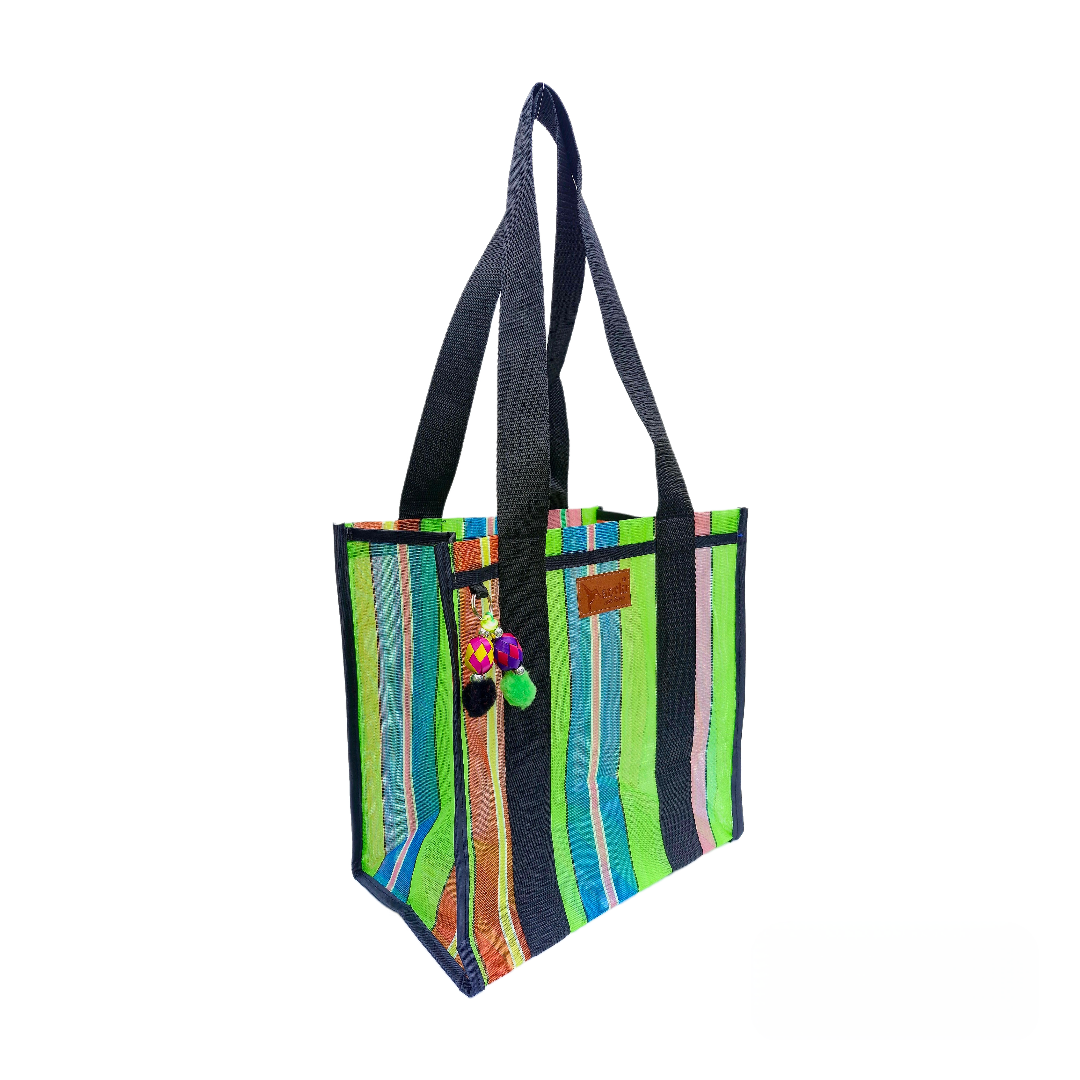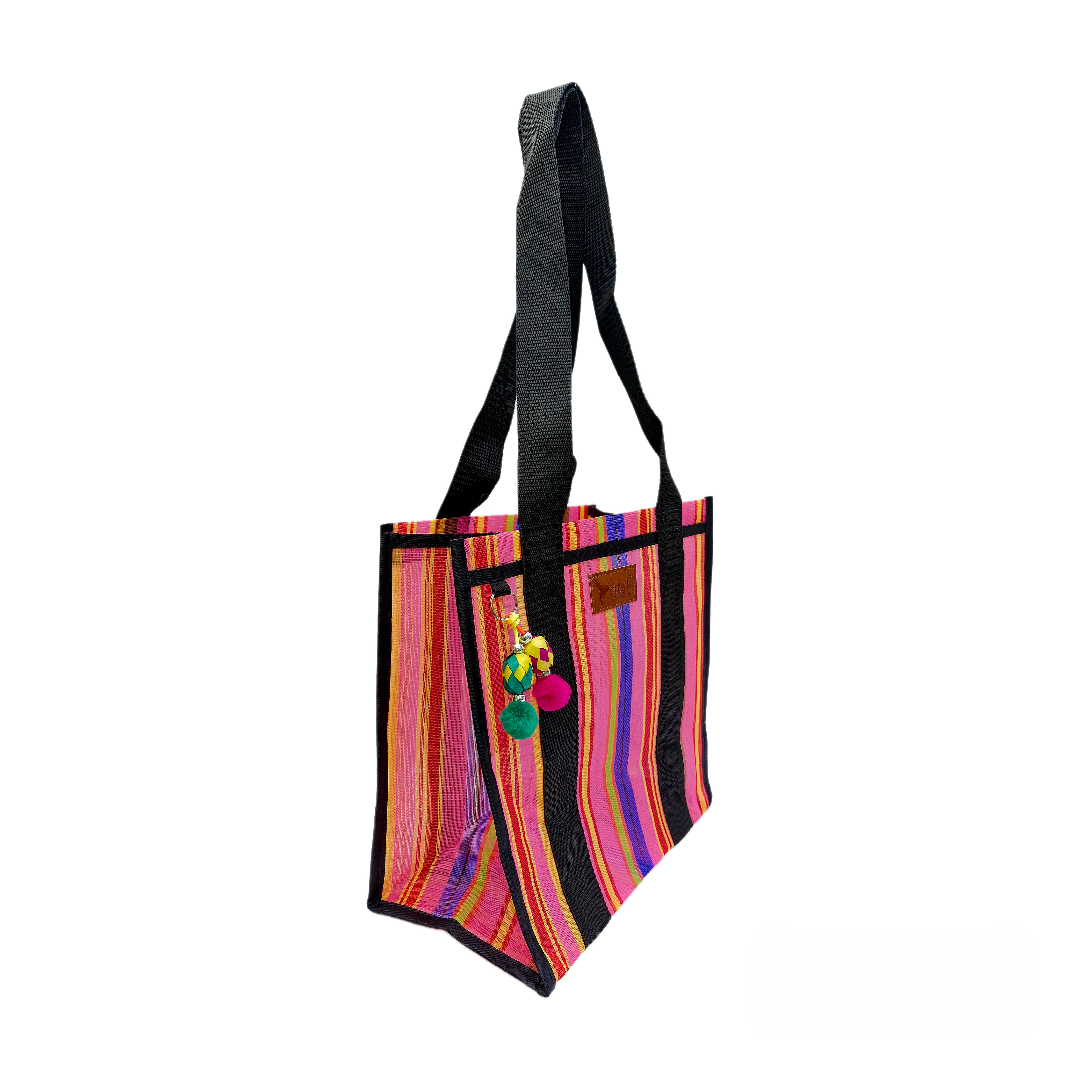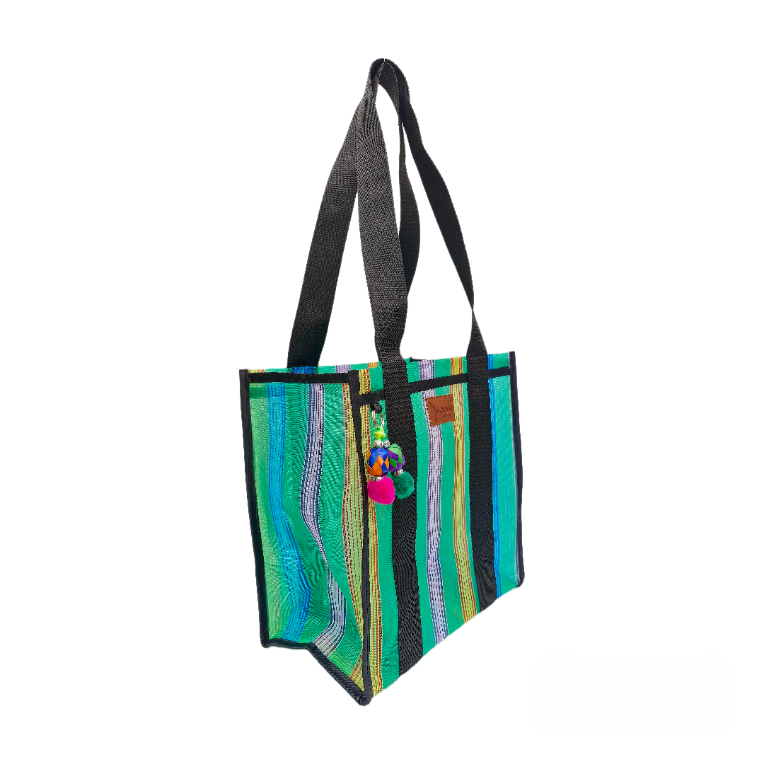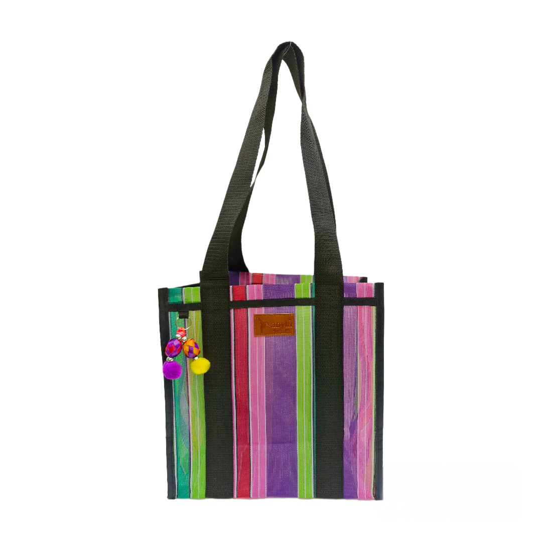Inspired by the colorful ixtle bag used by the Aztecs, we have designed each of our products as a manifestation of our Mexicanness. Handcrafted with mesh, it carries our distinctive keychain made with typical materials such as pewter from Tonalá, Jalisco and Michoacan palm spheres.