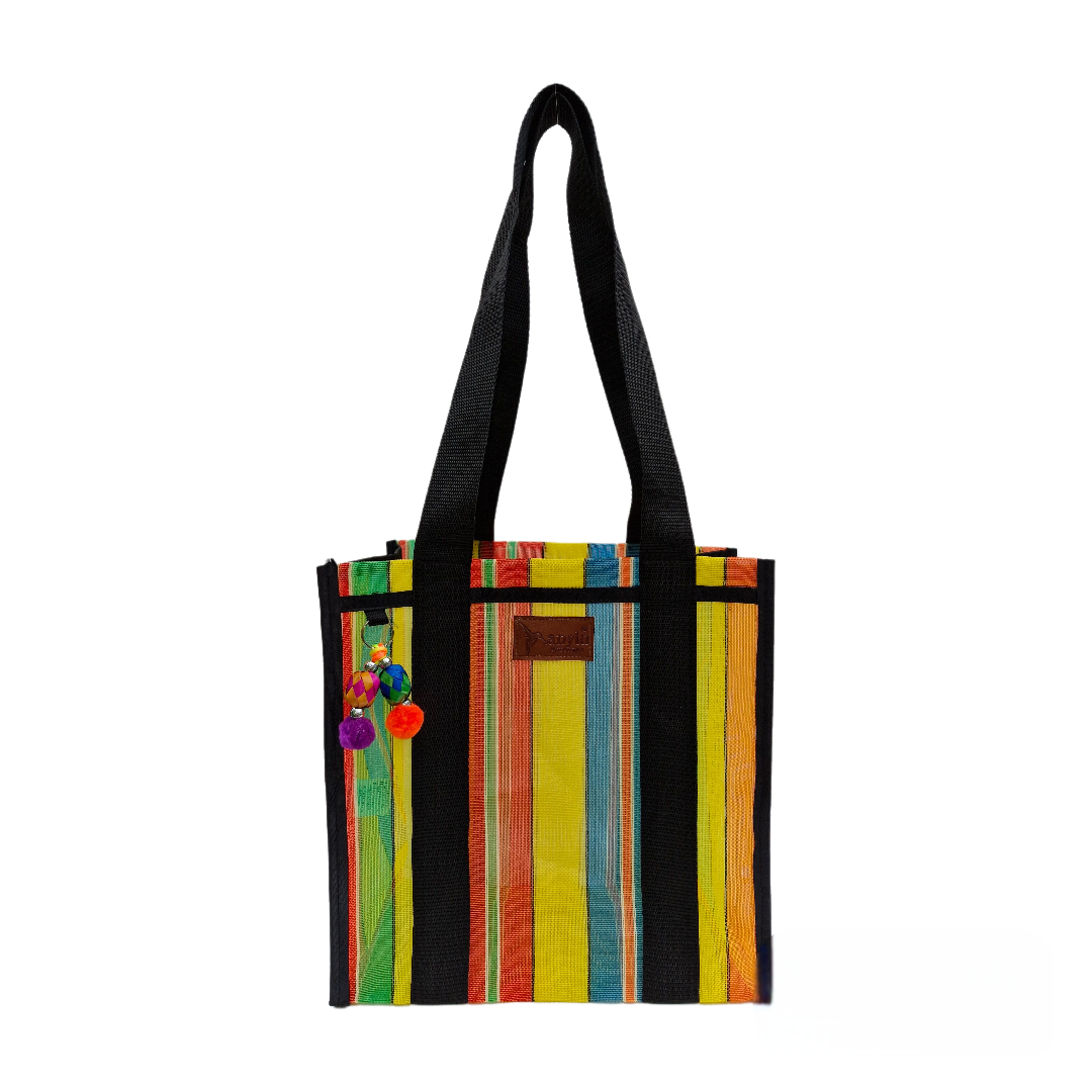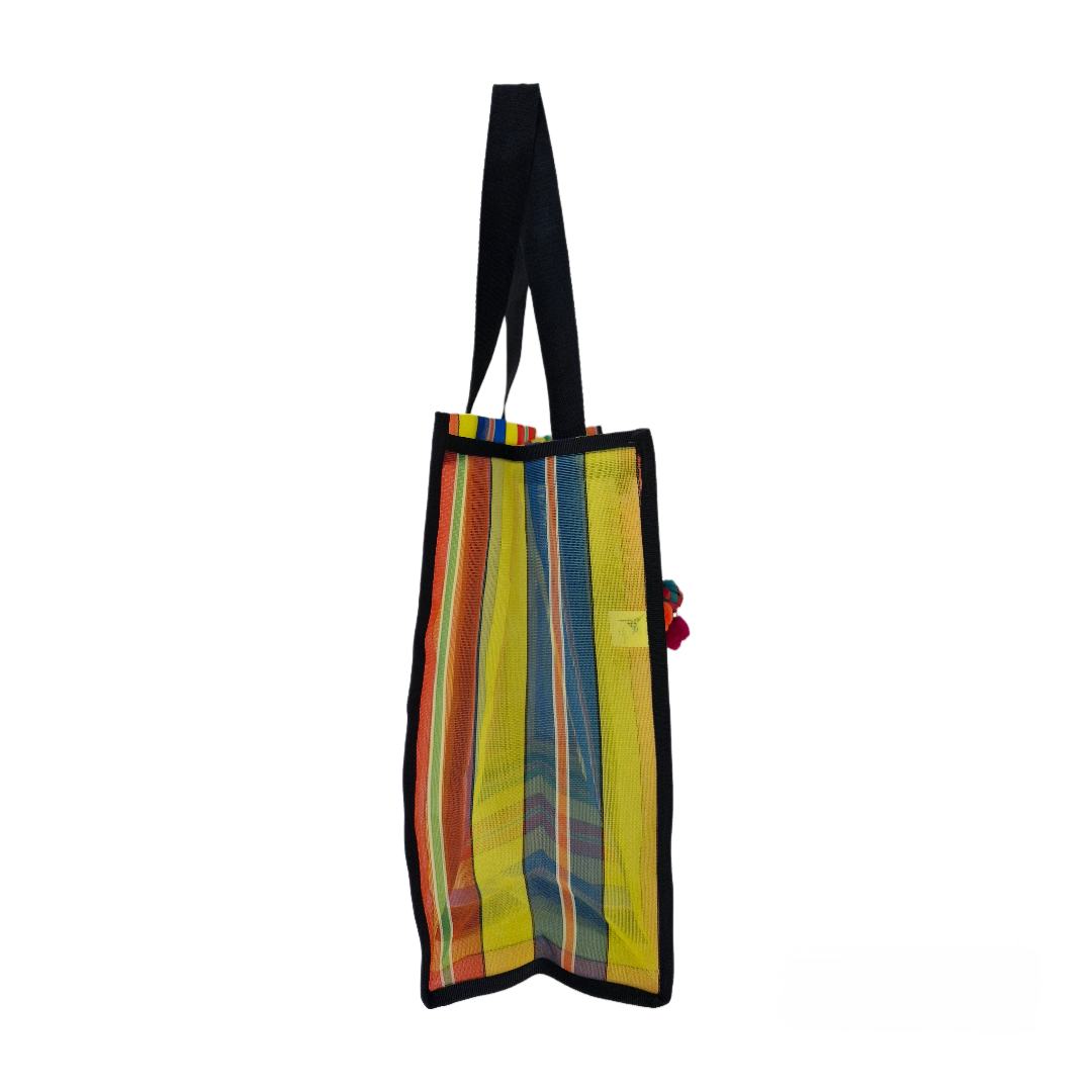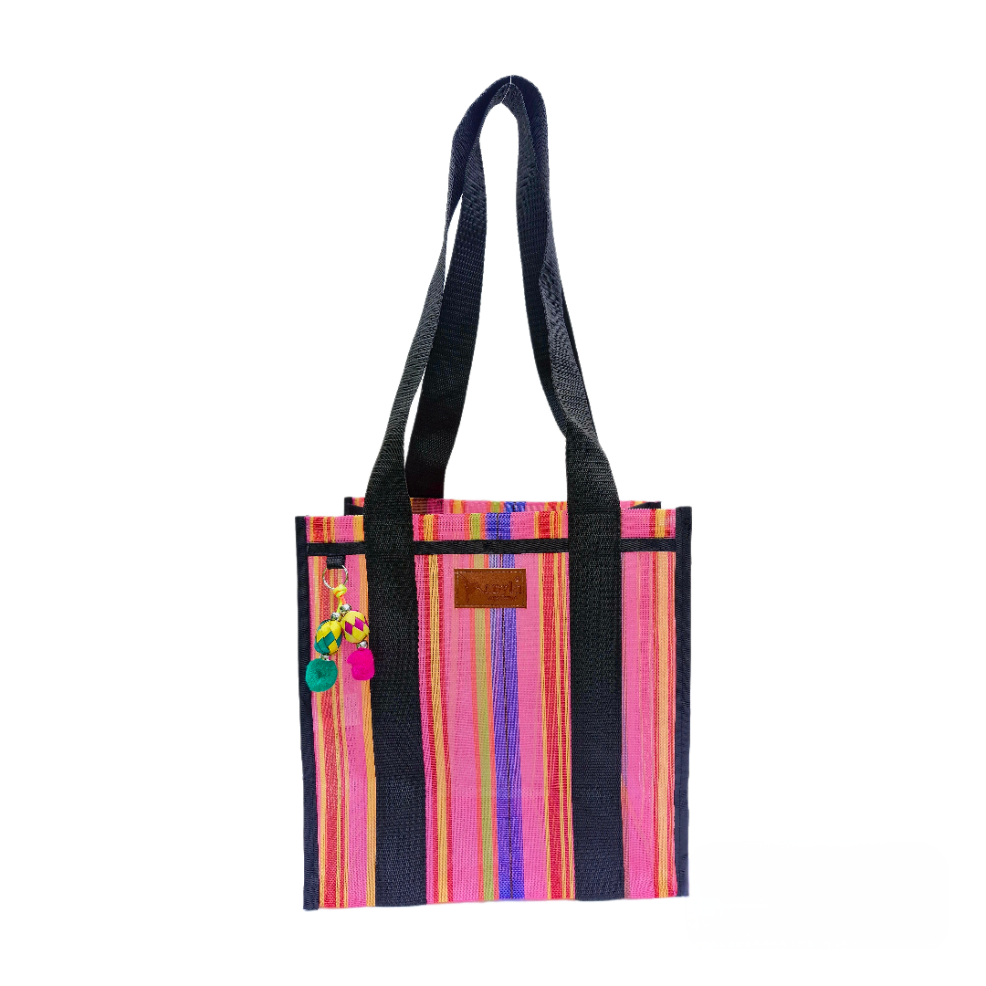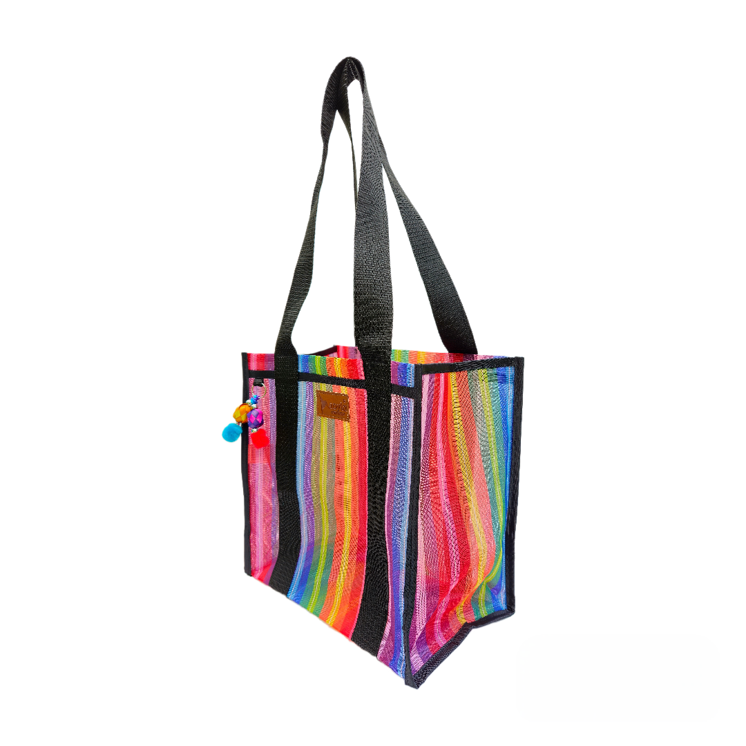 Inspired by the colorful ixtle bag used by the Aztecs, we have designed each of our products as a manifestation of our Mexicanness. Handcrafted with mesh, it carries our distinctive keychain made with typical materials such as pewter from Tonalá, Jalisco and Michoacan palm spheres.