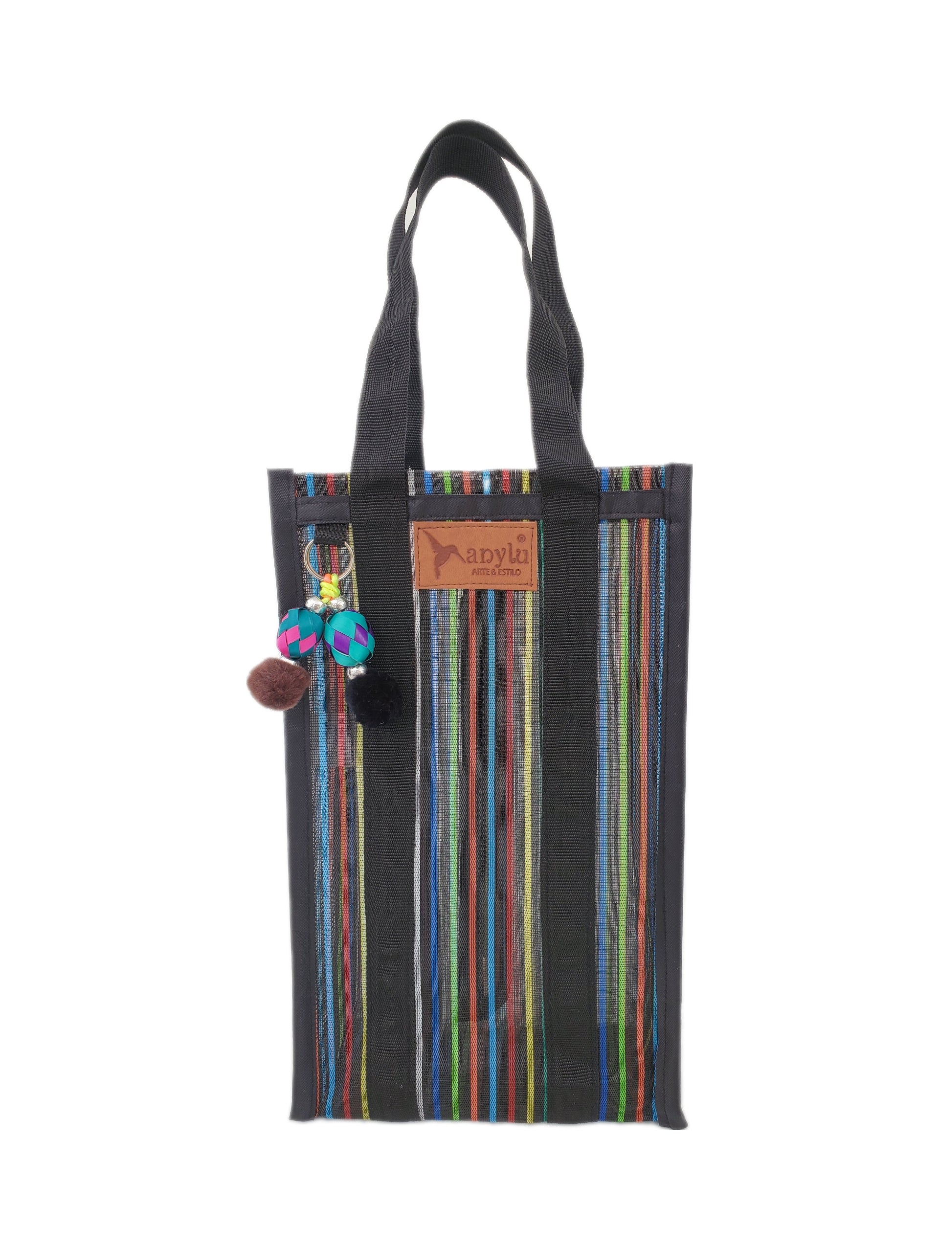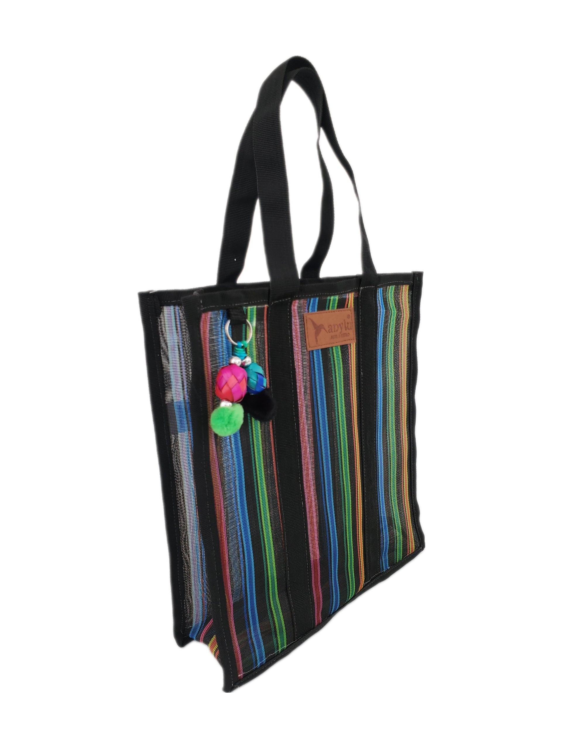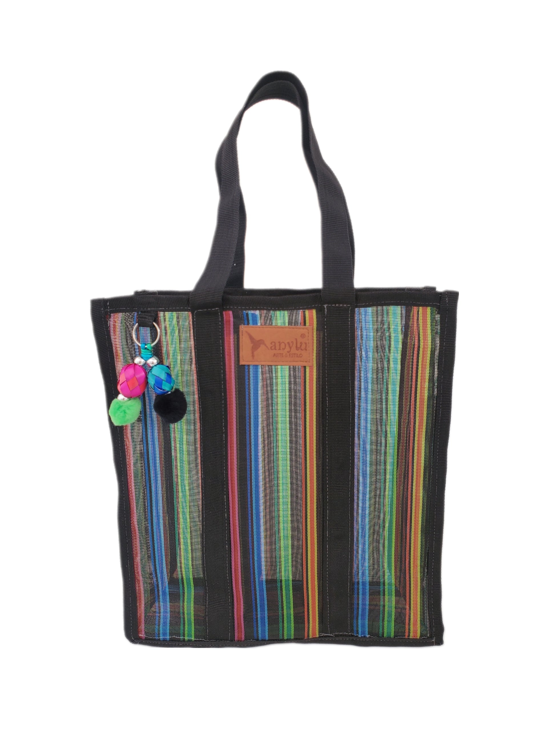Inspired by the colorful ixtle bag used by the Aztecs, we have designed each of our products as a manifestation of our Mexicanness. Handcrafted with mesh, it carries our distinctive keychain made with typical materials such as pewter from Tonalá, Jalisco and Michoacan palm spheres.