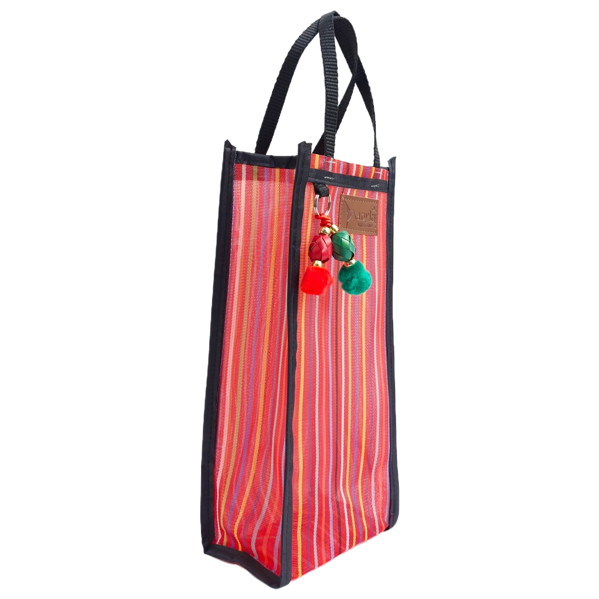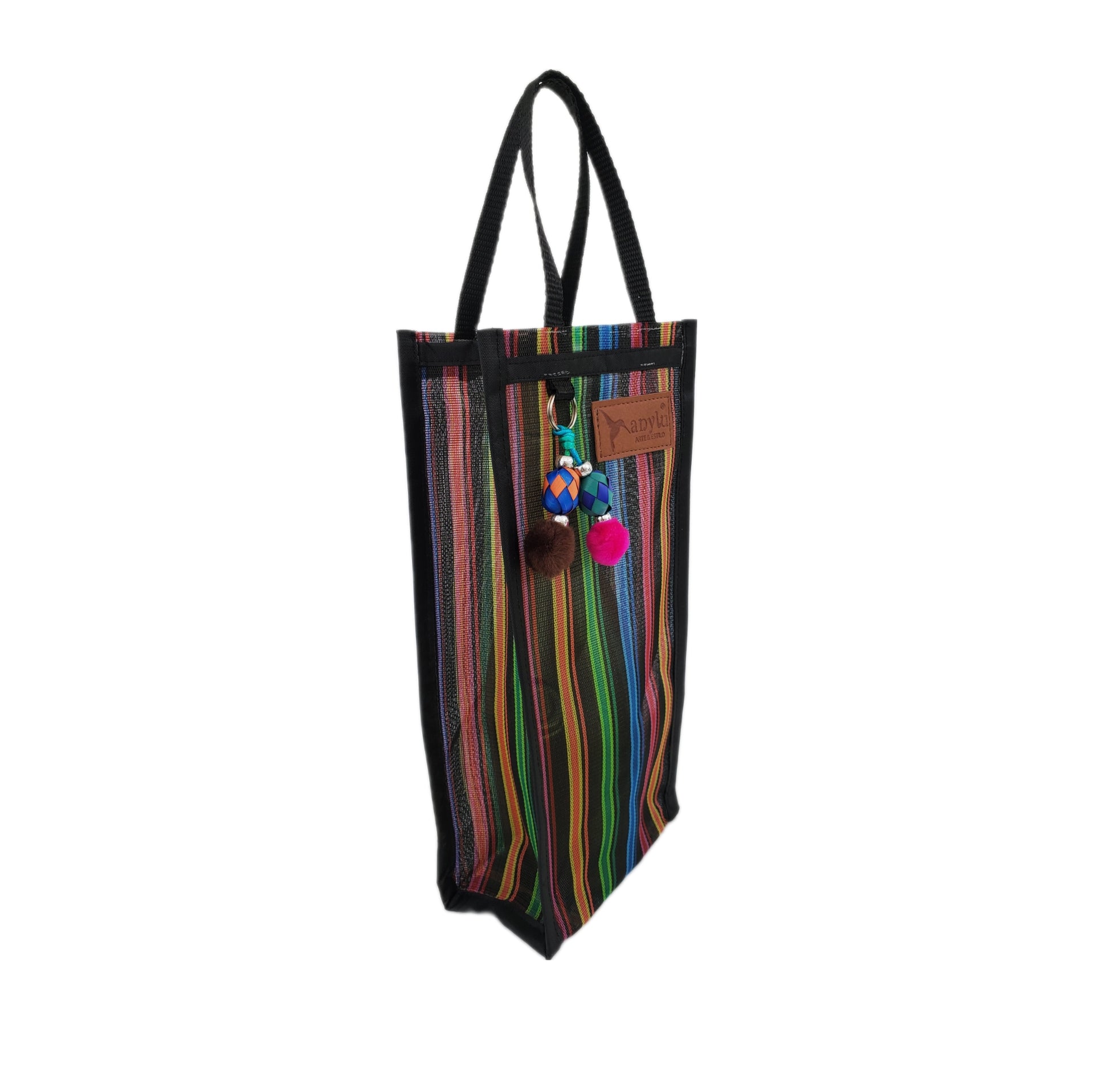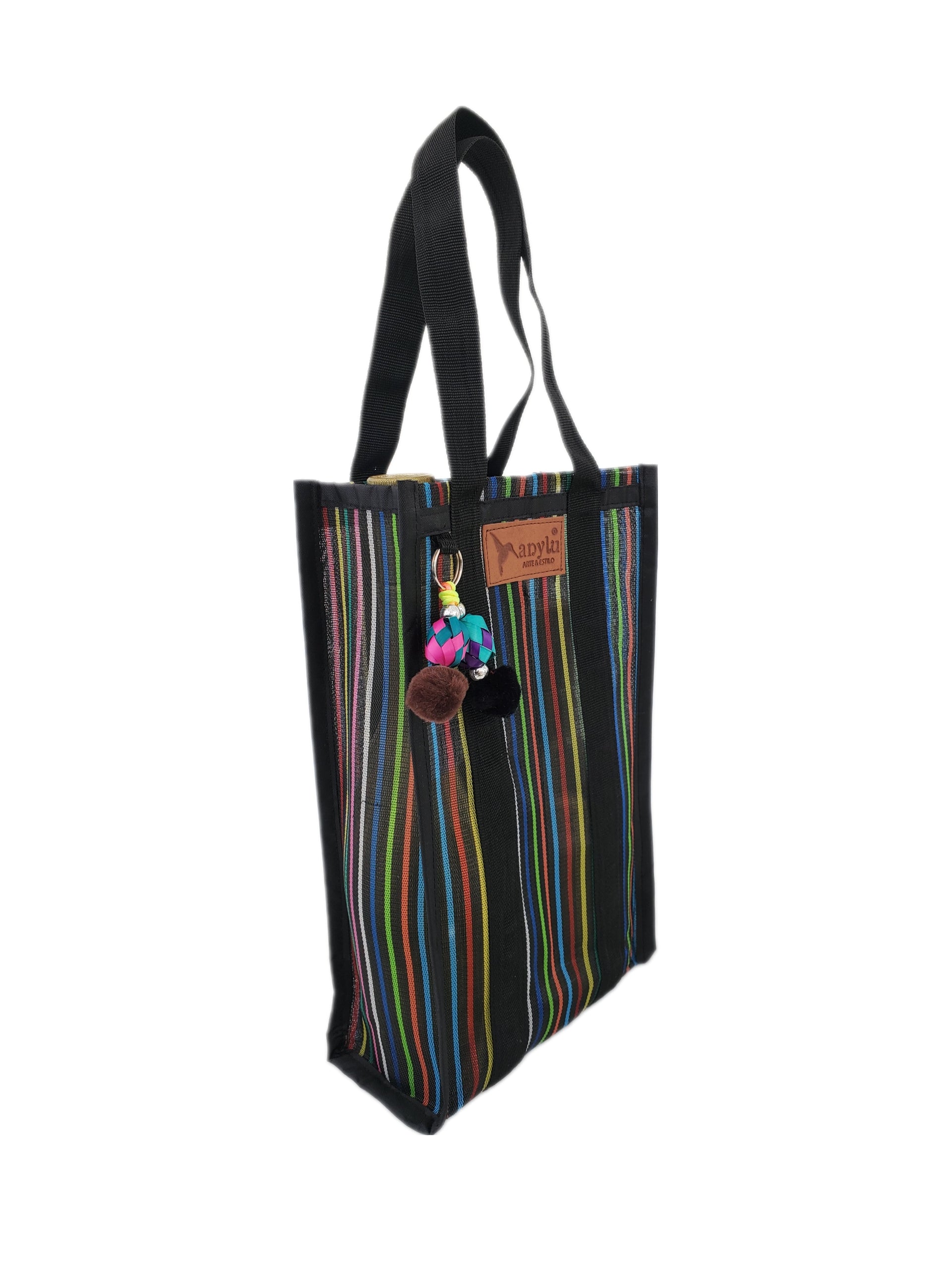 Inspired by the colorful ixtle bag used by the Aztecs, we have designed each of our products as a manifestation of our Mexicanness. Handcrafted with mesh, it carries our distinctive keychain made with typical materials such as pewter from Tonalá, Jalisco and Michoacan palm spheres.