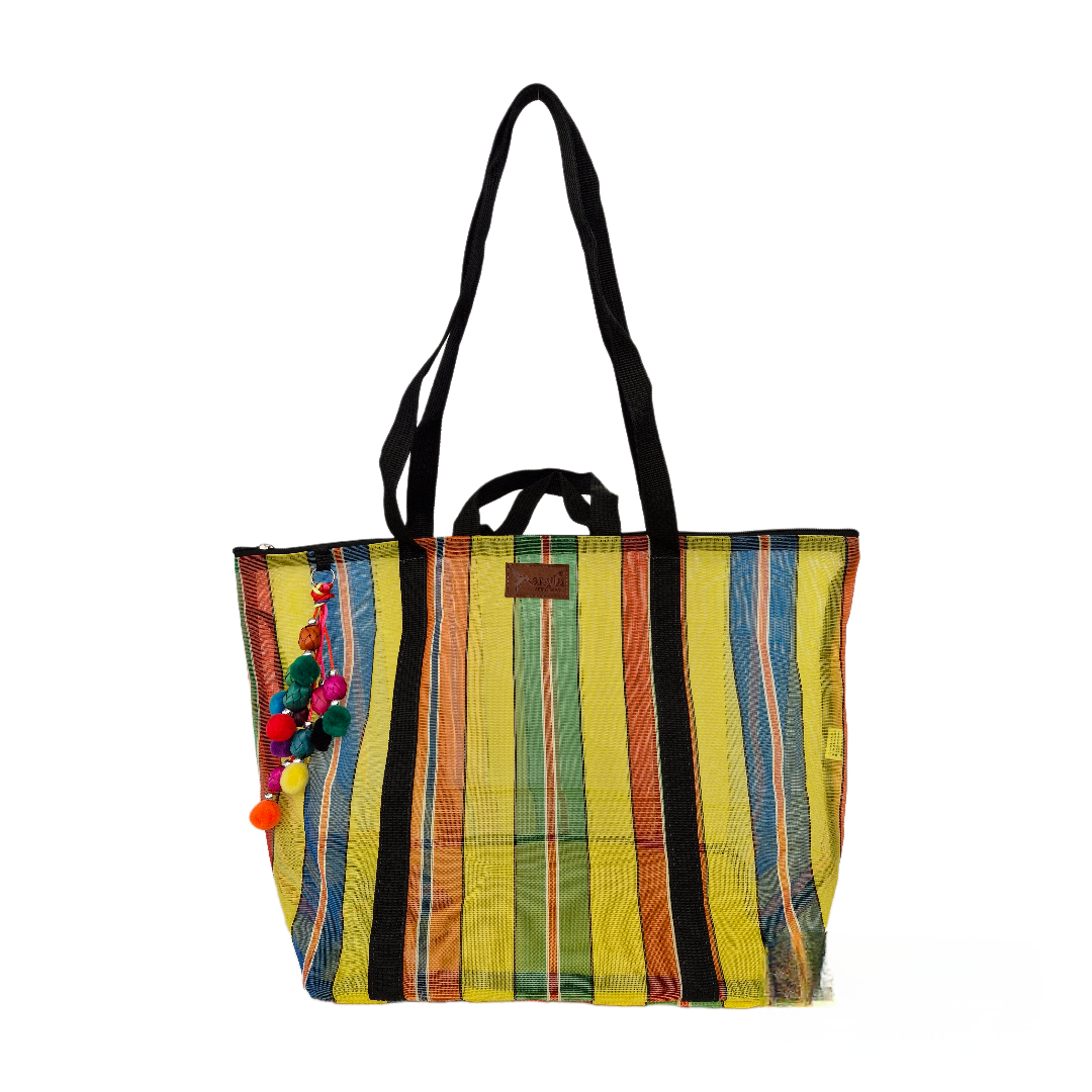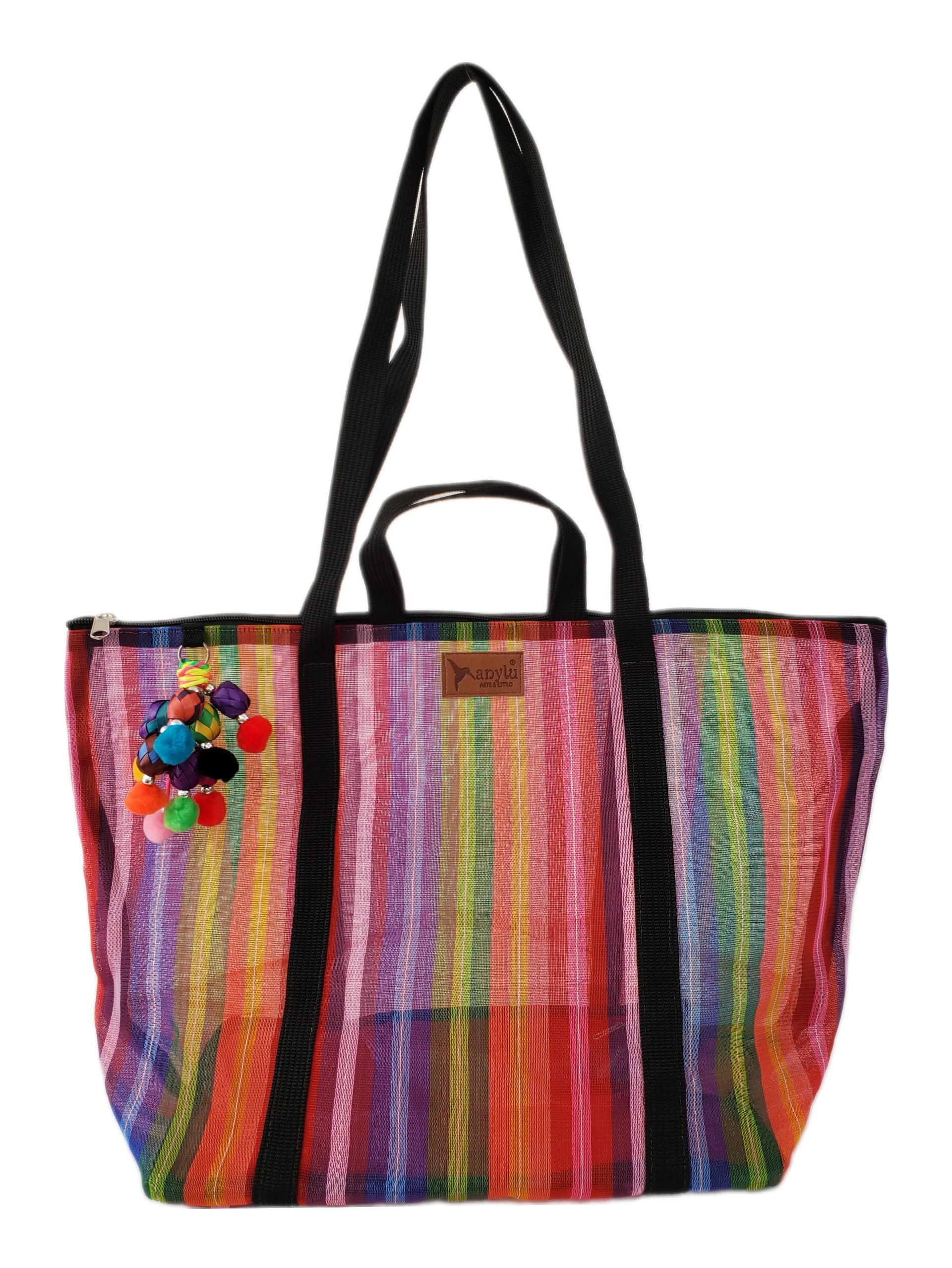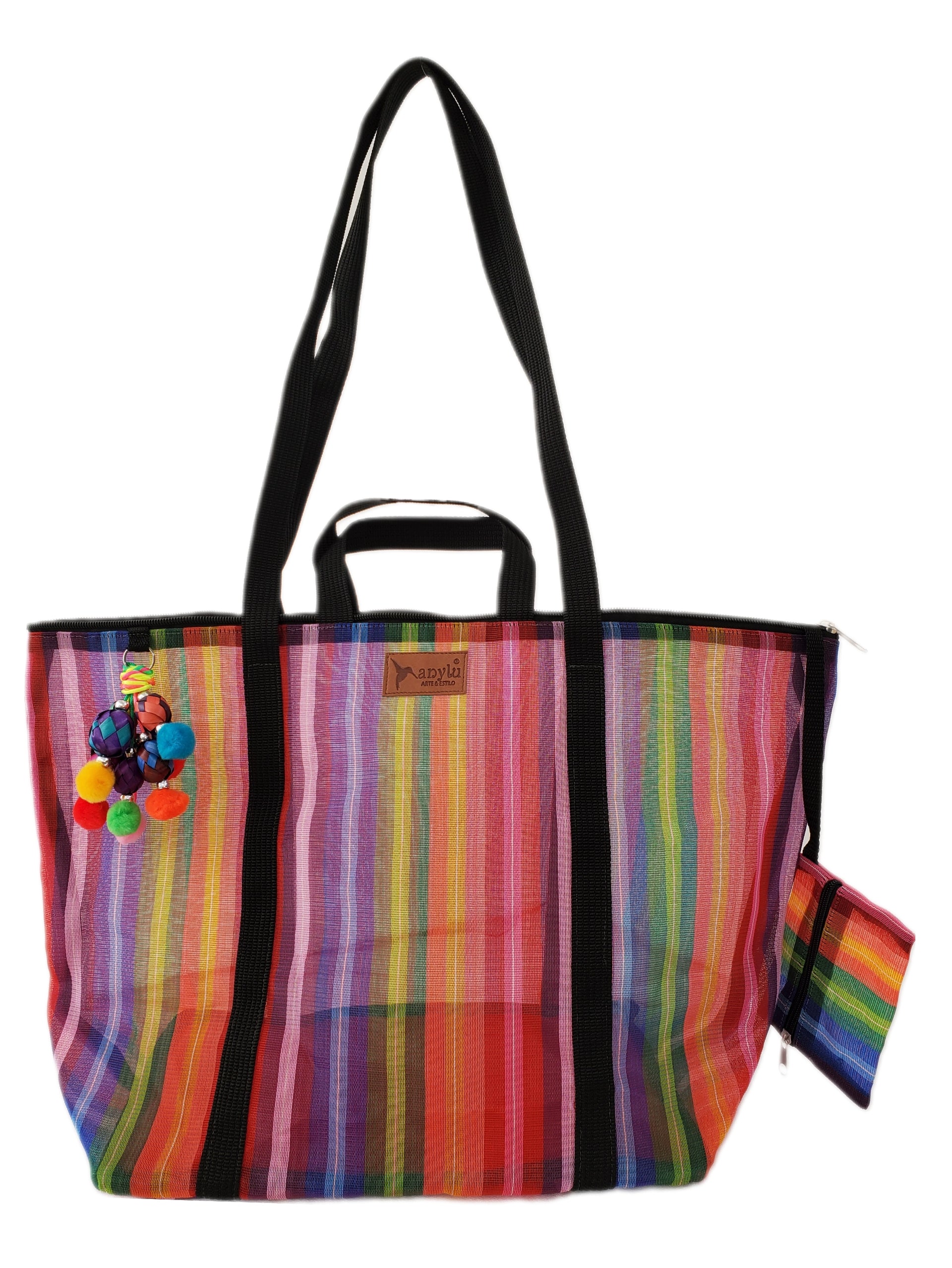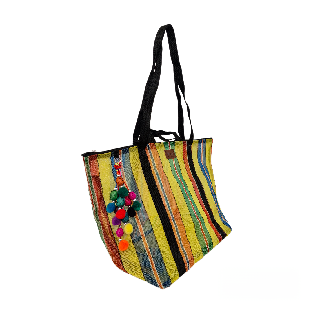 Inspired by the colorful ixtle bag used by the Aztecs, we have designed each of our products as a manifestation of our Mexicanness. Handcrafted with mesh, it carries our distinctive keychain made with typical materials such as pewter from Tonalá, Jalisco and Michoacan palm spheres.