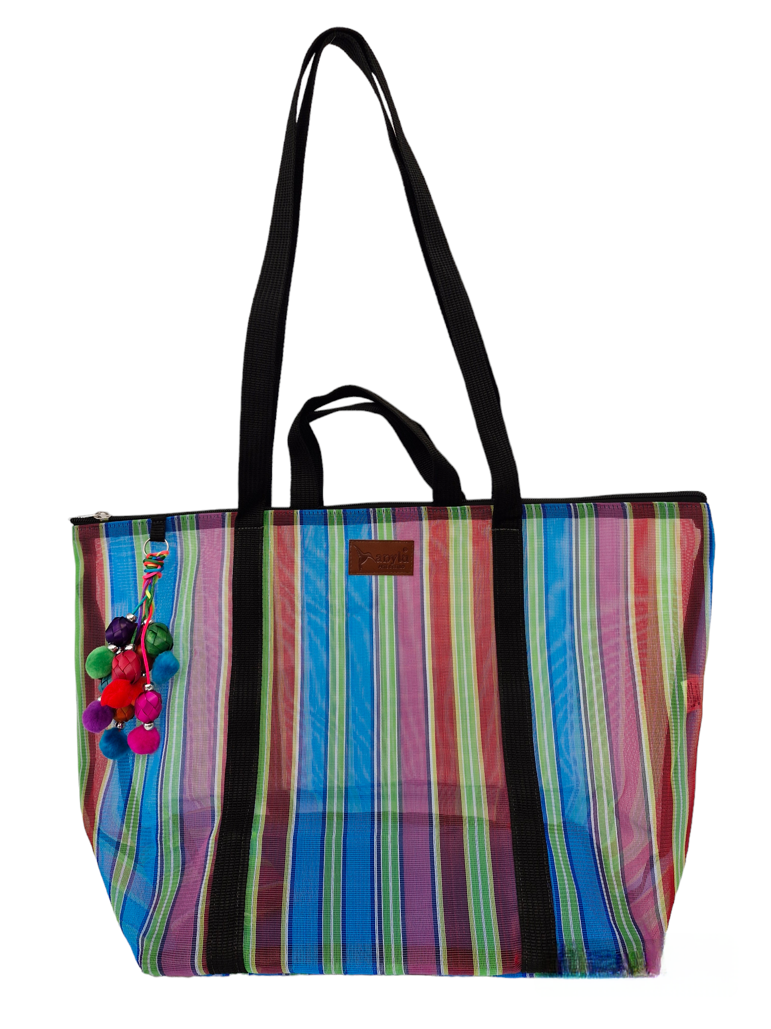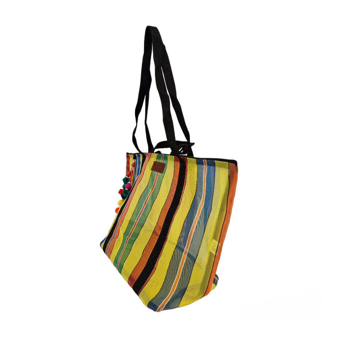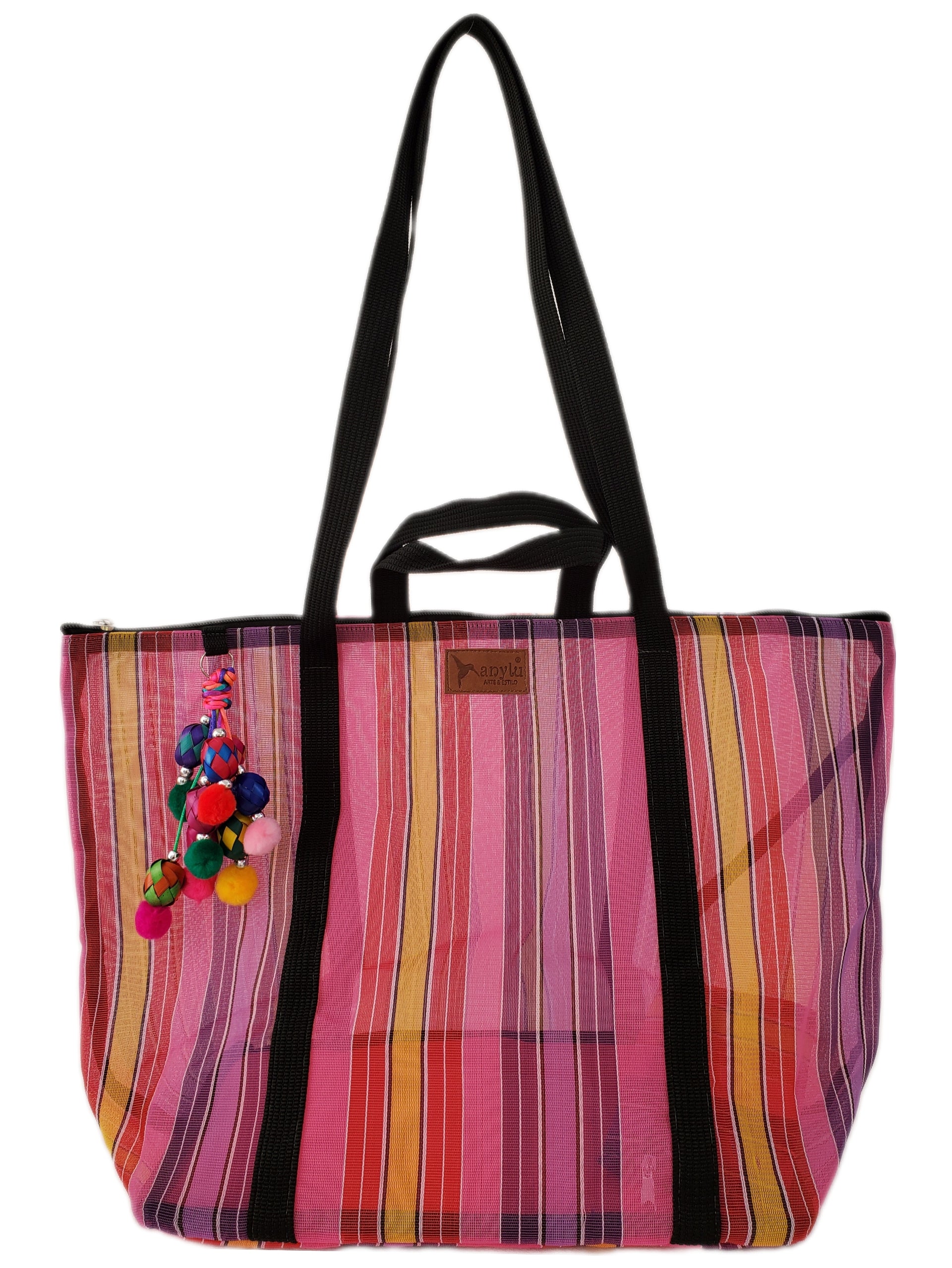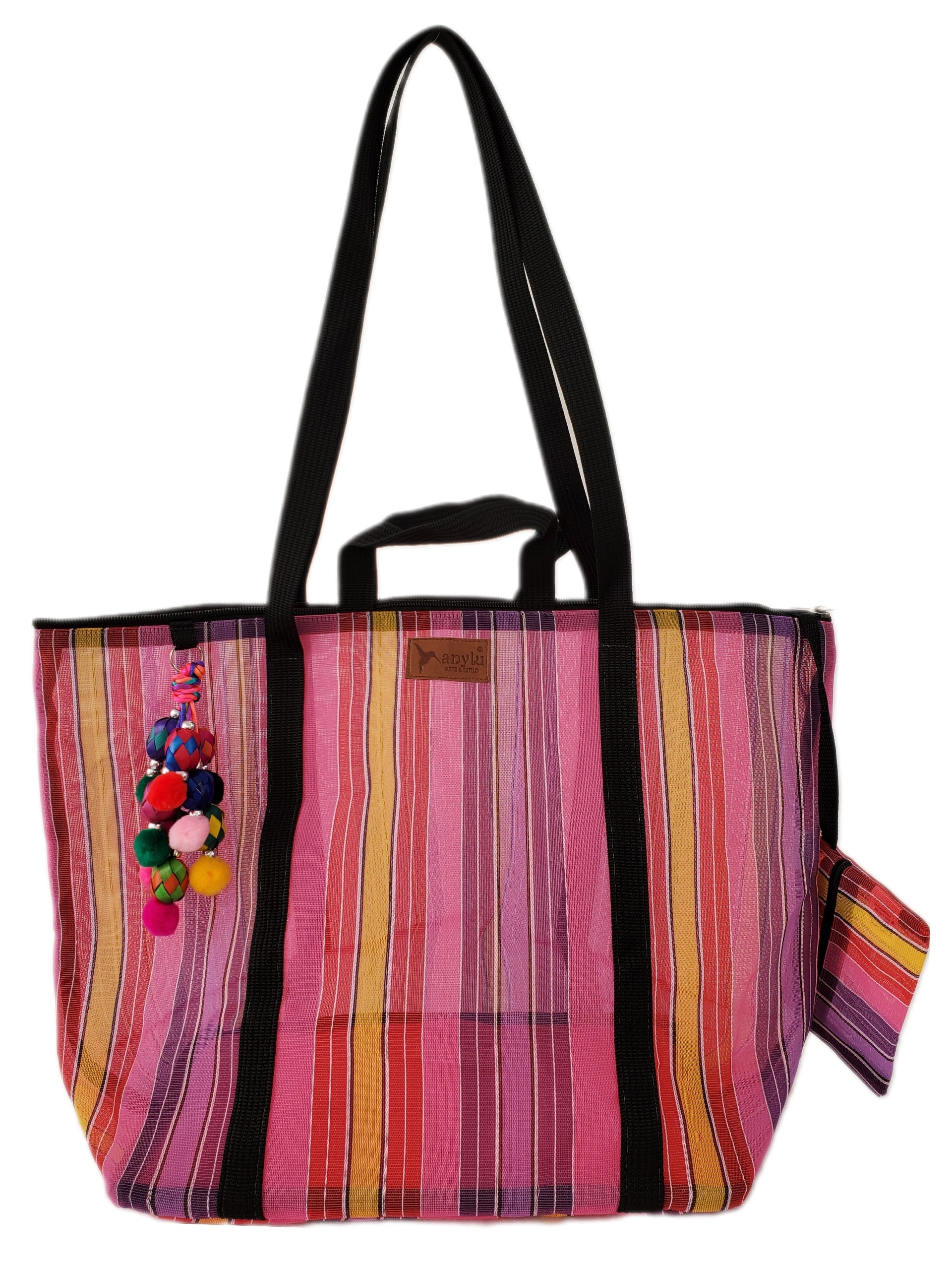 Inspired by the colorful ixtle bag used by the Aztecs, we have designed each of our products as a manifestation of our Mexicanness. Handcrafted with mesh, it carries our distinctive keychain made with typical materials such as pewter from Tonalá, Jalisco and Michoacan palm spheres.