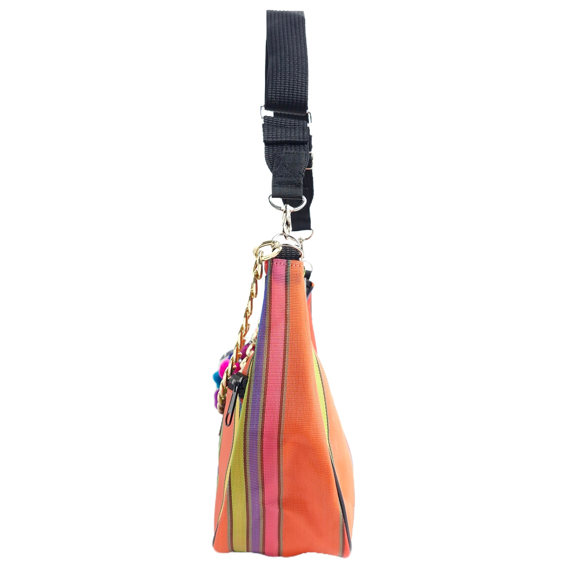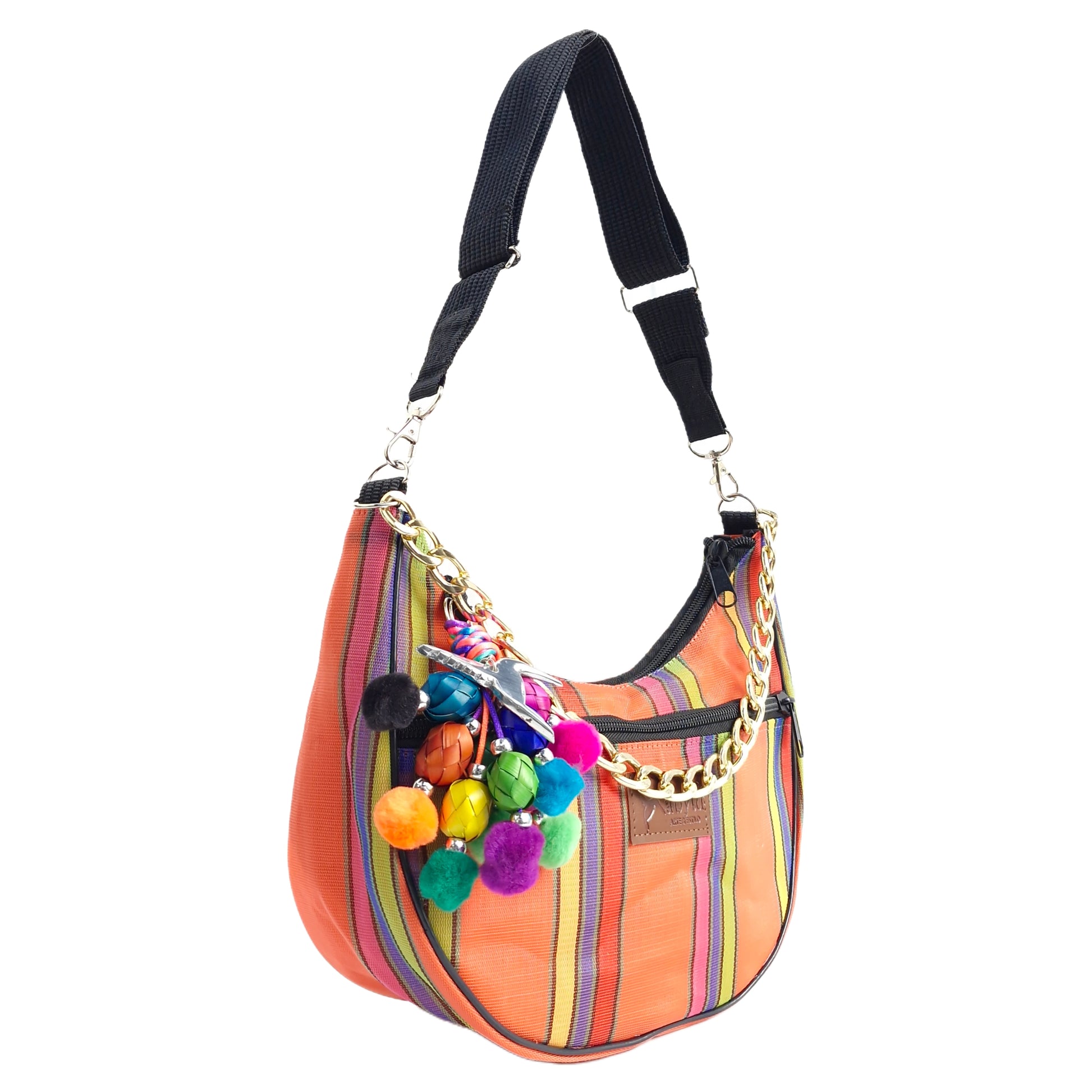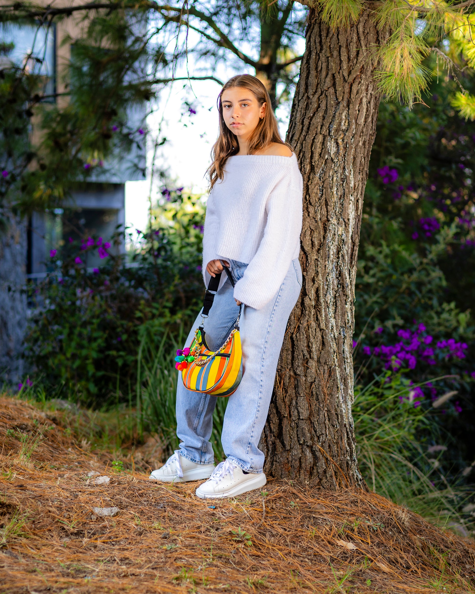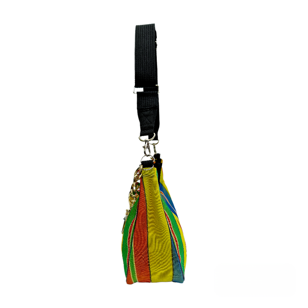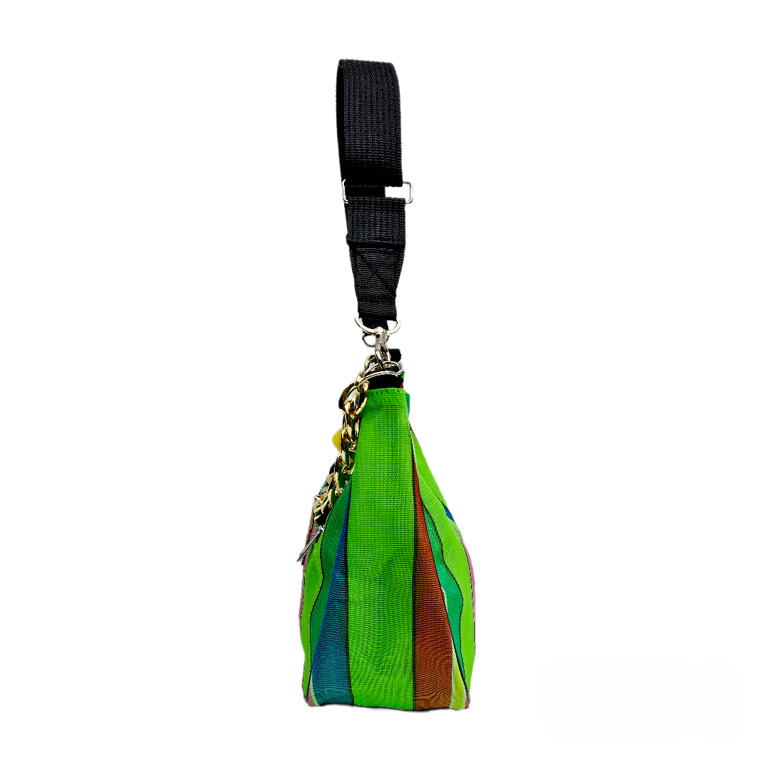 Descubre el bolso Luna, una pieza única que combina elegancia y estilo en una forma de media luna innovadora. Con unas dimensiones perfectas de 28 cm de ancho y 22 cm de alto, este bolso ofrece un diseño sofisticado y práctico. Su cadena dorada le aporta un toque de glamour, mientras que el asa larga ajustable garantiza comodidad y versatilidad en cada uso. Además, el encantador llavero con esferas de palma de Tzintzuntzan añade un detalle artesanal y distintivo, que celebra la tradición y la belleza en cada pequeño detalle. Luna es la elección ideal para quien busca un accesorio que resalte por su diseño elegante y su autenticidad cultural.