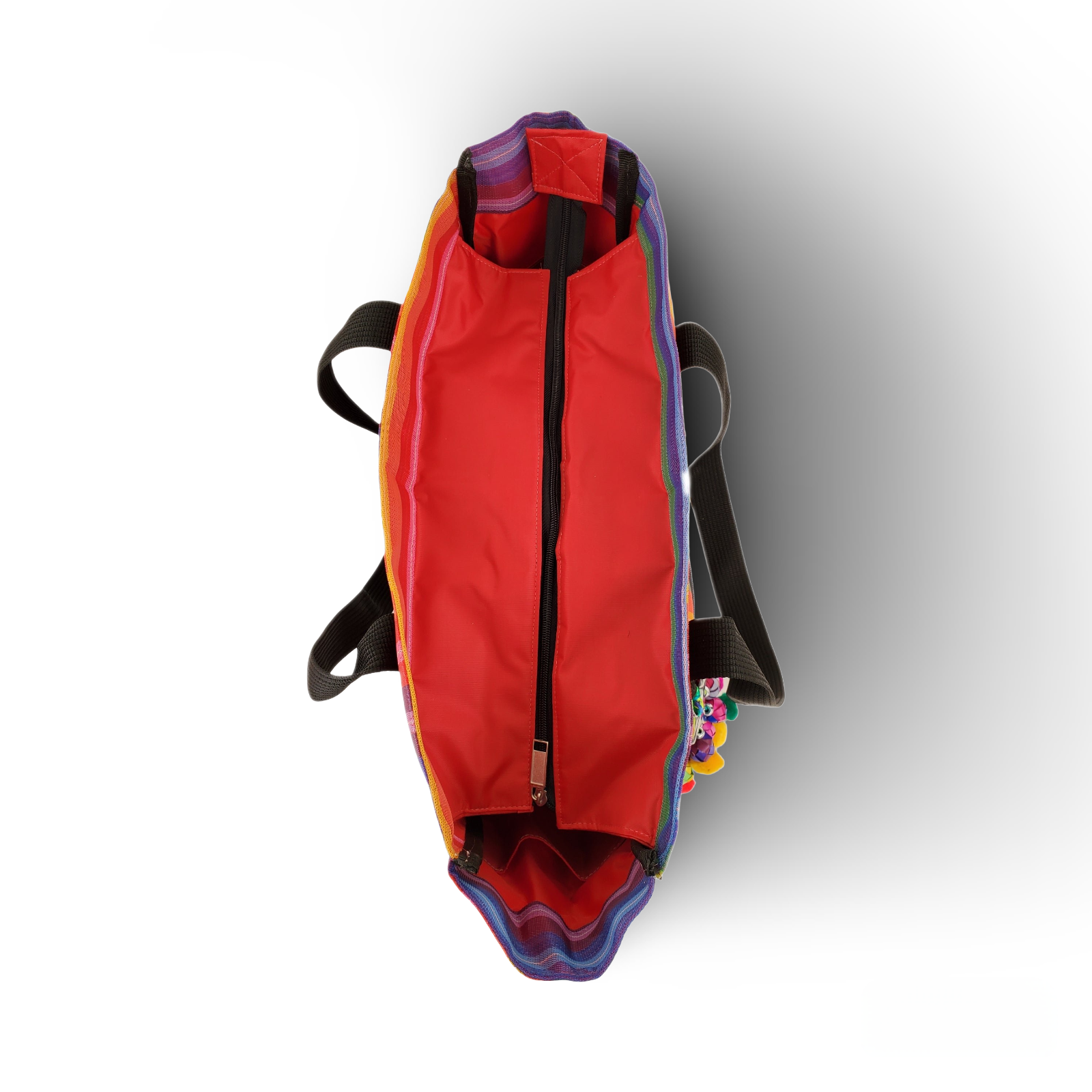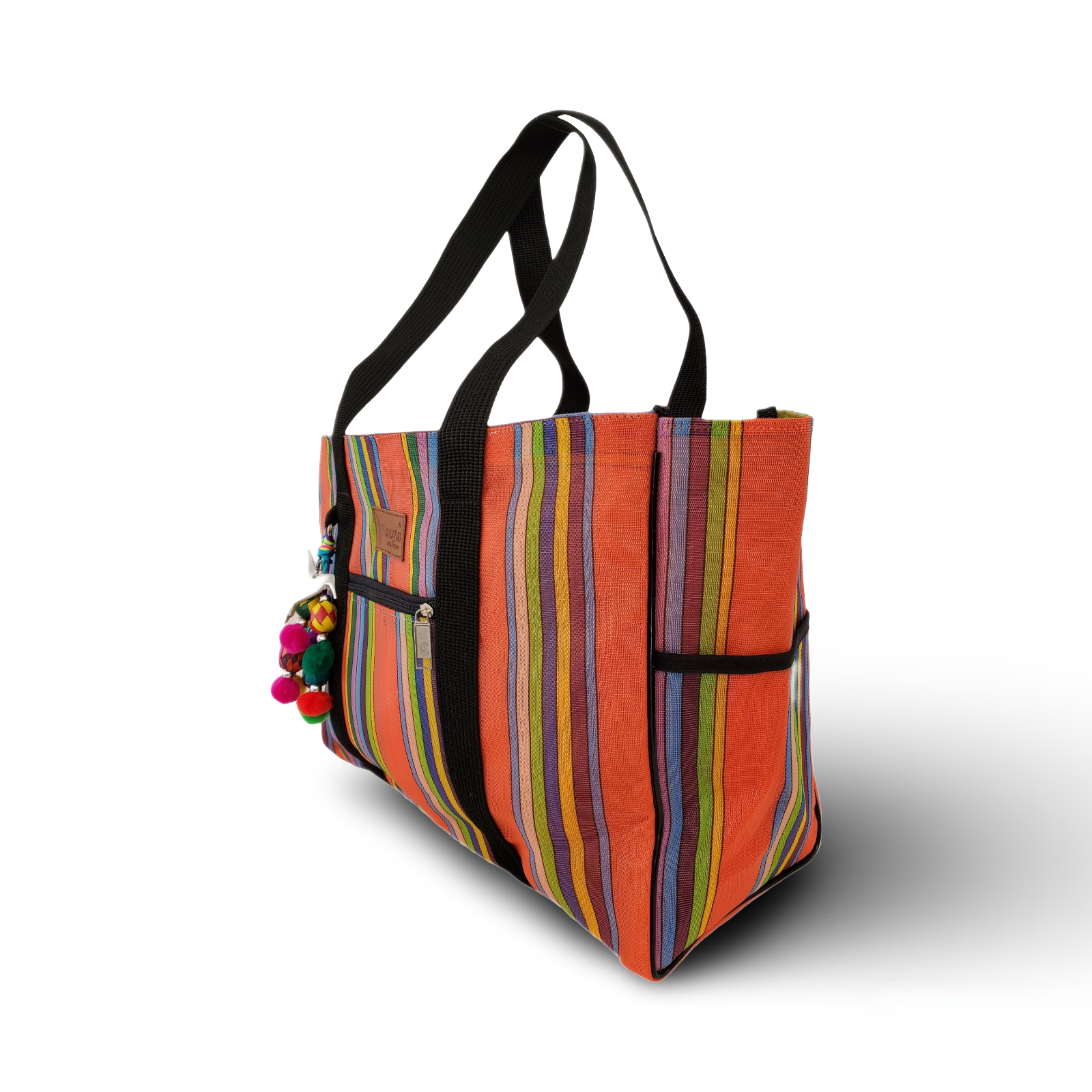 Inspired by the colorful ixtle bag used by the Aztecs, we have designed each of our products as a manifestation of our Mexicanness. Handcrafted with mesh, it carries our distinctive keychain made with typical materials such as pewter from Tonalá, Jalisco and Michoacan palm spheres.